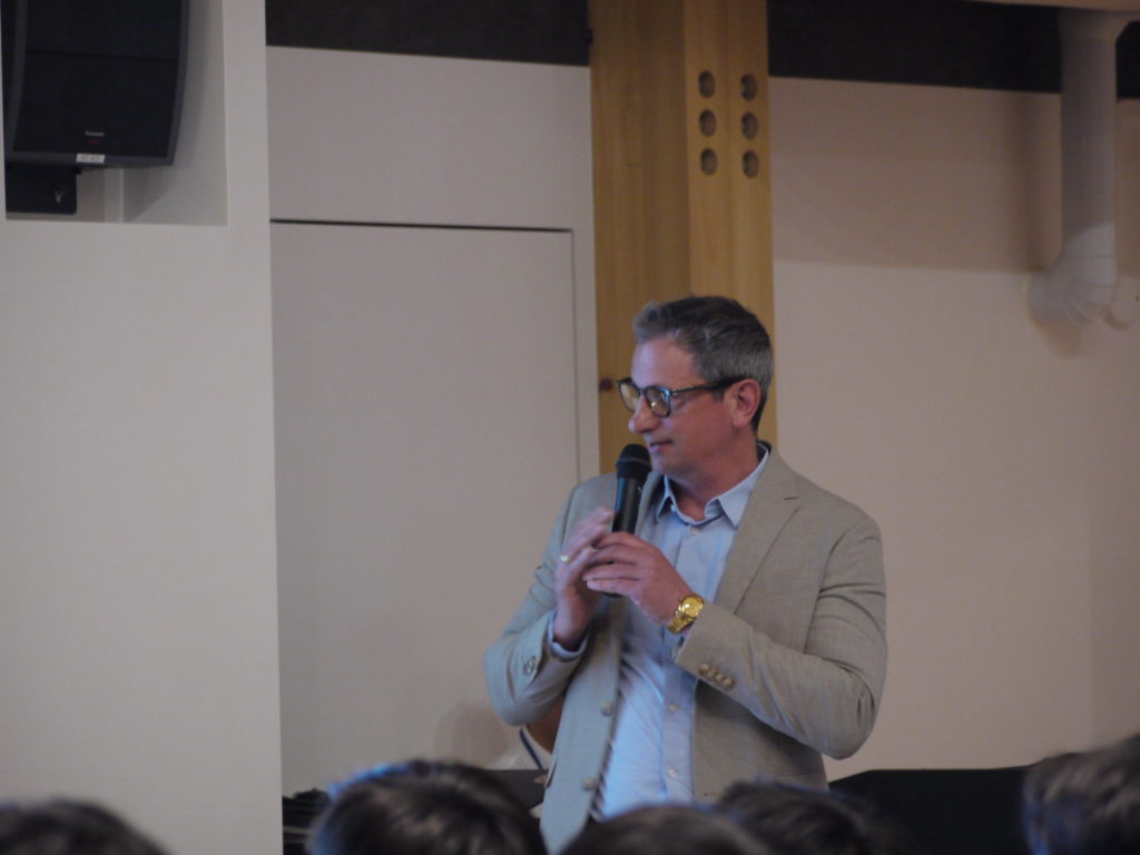 4月13日(月)、ドイツのマインツ大学よりスポーツ教育学を専門とするビンデル教授が本校を訪問され、サッカー部の生徒を対象に特別講演を行ってくださいました。